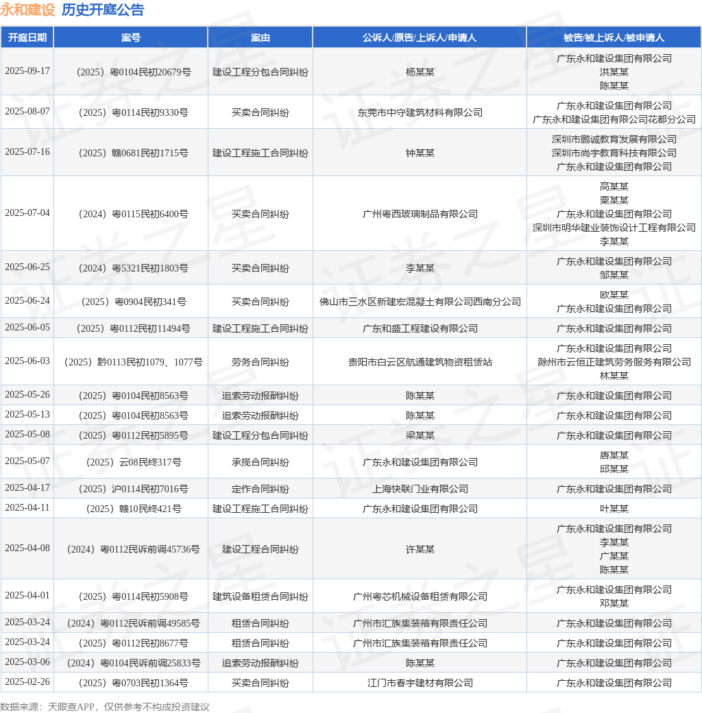 本站消息,根据天眼查APP显示,近日公布了一则广东永和建设集团有限公司作为被告/被上诉人的开庭公告,详细内容如下: